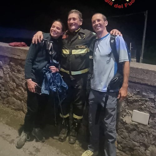 Subito è scattato l'intervento dei caschi rossi del distaccamento di Maiori, supportati da una squadra SAF (Speleo Alpino Fluviale), specializzata nelle operazioni in aree impervie. Grazie al coordinamento della Sala Operativa, che ha localizzato la coppia e guidato le comunicazioni con le squadre sul posto, i soccorritori sono riusciti a raggiungerli dopo circa due ore di cammino.